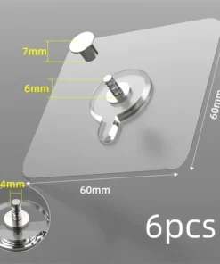 Seamless Screw, 6Pcs PVC Strong Adhesive Nails Wall Poster Seamless Wall Hook Waterproof Durable Transparent Kitchen Bathroom Screw Hook Hanger has the following product features: