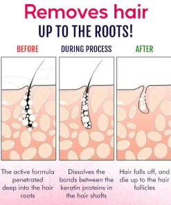 When the cream is applied to the skin, it begins to penetrate the hair shaft, where it targets and weakens the keratin bonds that hold the hair together. This process causes the hair to become weakened and loose, allowing it to be easily wiped away.