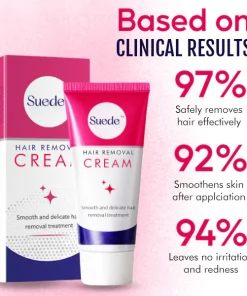 Suede™ Hair Removal Cream is a scientifically formulated hair removal product that works by breaking down the structural protein keratin, which is found in hair, without affecting the surrounding skin.