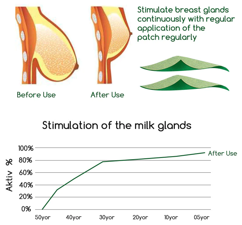 - Usage: Use one pair per week, apply the patches under the breasts for 6-8 hours per day.