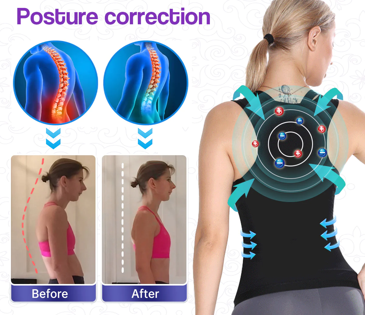 Improve your posture, increase strength, and relieve lower back stress with the Sugoola™ IONICWAIST Tourmaline Push Up PlusSize Women Vest. This stylish vest can be discreetly worn under almost any outfit to correct poor posture and alleviate lower back discomfort. Its state-of-the-art technology and ergonomic design make it the perfect option for those looking to tackle posture issues.