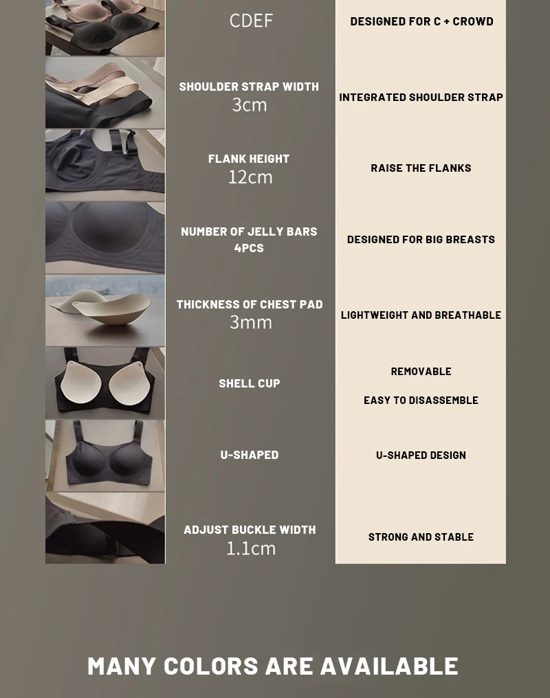 Prevent breast sagging, the cup is made of non-elastic material, which is based on vertical cutting to achieve the beauty effect, effectively preventing the breast from sagging and shaping a rounded chest curve.
