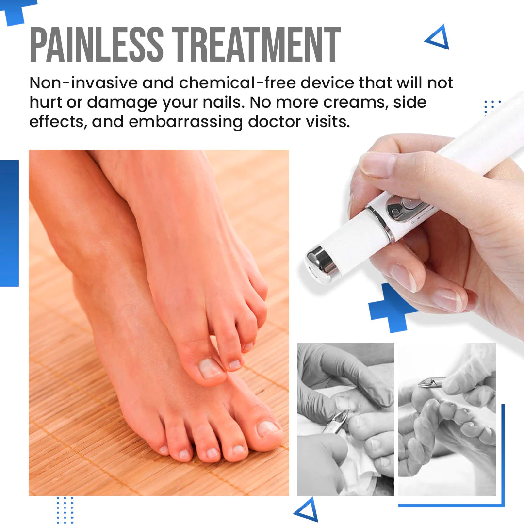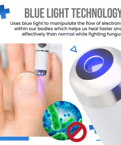 - Press and release the button repeatedly to activate the blue light, which will kill fungus cells on contact.