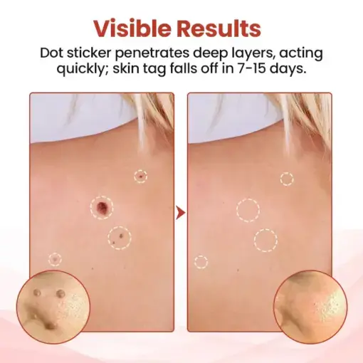 Within 7–14 days, the skin tag painlessly falls off, leaving the skin smooth and clear — with no freezing, cutting, or scarring involved.