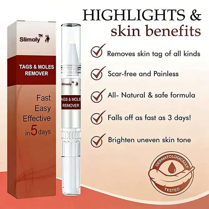 Highly recommended by dermatologists and skincare experts. the Slimoly™ WipeOff Tags & Moles Remover is a proven and effective treatment for common skin imperfections. offering visible results in just minutes.This proven liquid formula effectively targets common skin imperfections.
