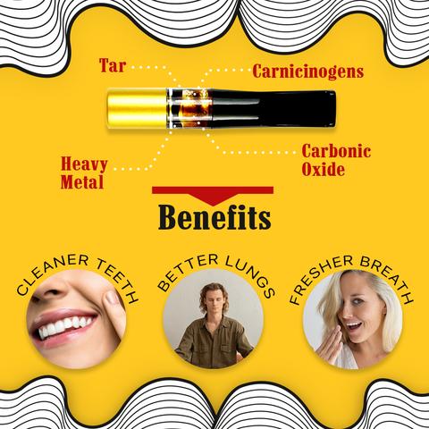 The microporous filtration of the physical principle protects and blocks tar and smoke stains while maintaining the same flavor of cigarettes. The TarOff Reusable Filter effectively reduces smoke tar and inhaled stains, reduces tobacco stains on teeth and fingers, and keeps your mouthpiece dry, thanks to its dual filtration technology.