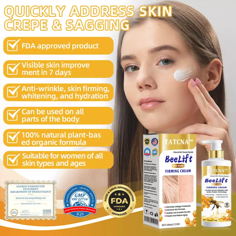 Tatcna™ BeeLift Anti-Aging Firming Cream, clinically tested by dermatologists, has shown remarkable results in reducing wrinkles and tightening loose skin in just 7 days.