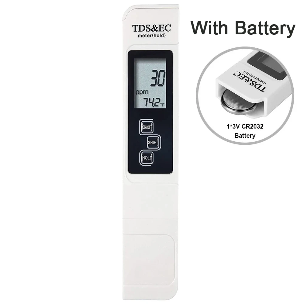 【3-in-1 TDS Meter】: Measurement Range 0-9990ppm, 0-9990μs/cm; Accuracy ± 2%, 0.1- 80.0°C, 32.0-176.0°F. Note: This meter can’t test sea water.