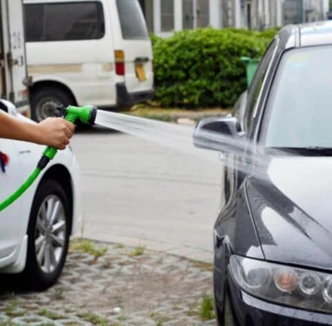 This hose allows you to cover a whole garden or maneuver around your house with a flexible hose that extends up to 200 feet when filled with water. No need to pull. Just turn on your faucet and it’ll automatically expand.