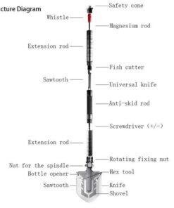 3-IN-1 MULTIFUNCTION TOOL – Mempa’s Multi-Tool Shovel includes an axe, hex driver, serrated knife, wire cutter, hoe, harpoon, saw, rescue knife, bottle opener, safety hammer,, Phillips head bit, flathead bit, and fire starter. Be prepared for any situation!