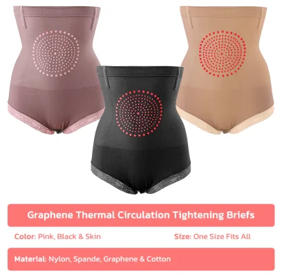 The Thermal Circulation Tightening Graphene Briefs releases natural energy through thermal circulation, improving blood circulation throughout the body and eliminating toxins from the uterus. Together with the graphene (a precious natural mineral) in the middle of the panties, infrared heat is absorbed by cells, causing a physical phenomenon called “resonance”. Thus the cellular activities are instantly invigorated, resulting in better blood circulation and overall improved metabolism. Improves various gynecological diseases, reduces body fat and lifts the buttocks.