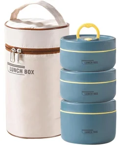 Portable Insulated Food Lunch Container Set with Thermal Lunch Box 3 Separate Stackable Lunch Container for Adult Kids