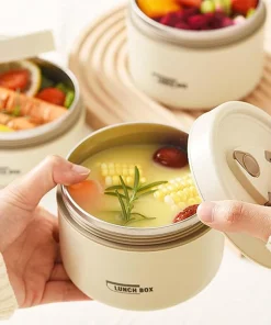 Each thermal lunch box has a separate lid. There is a built -in sealing silicone ring on the lid to prevent the sauce and soup from overflowing. There is an exhaust valve on the top of the lid, which can discharge the air in the container at any time, making the lunch box easier to open.