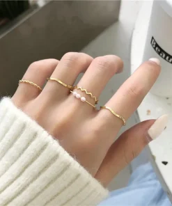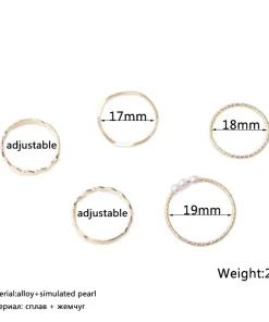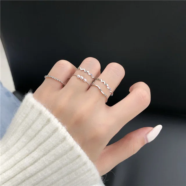 5pcs/set Ring Female Japanese Korean Style Simple Three Pearl Ring Personality Ring Net Red Tail Ring Jewelry