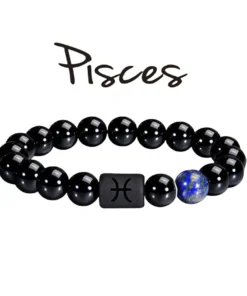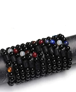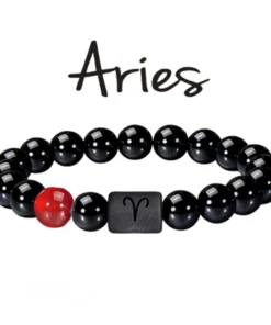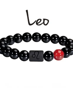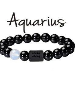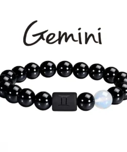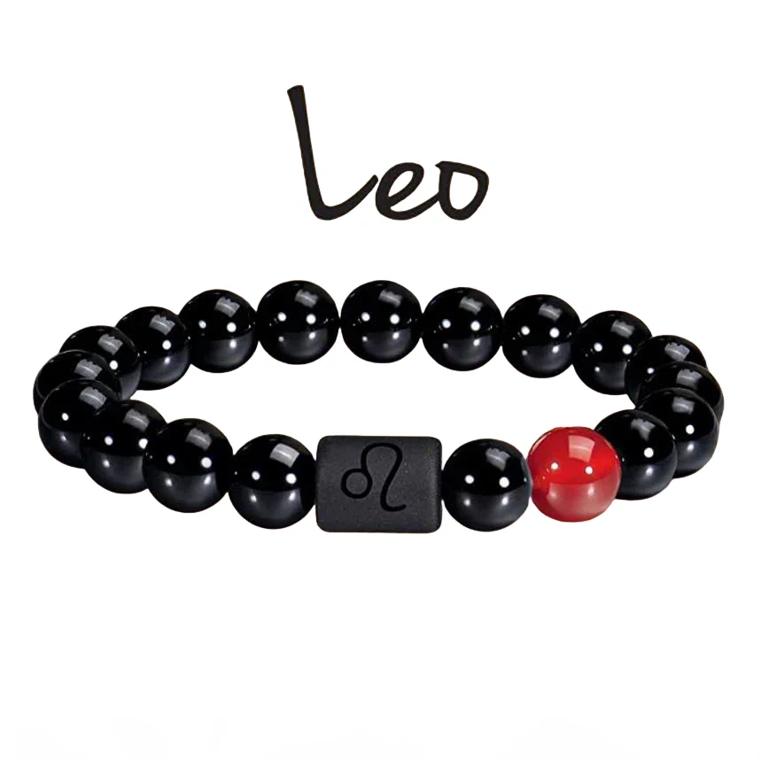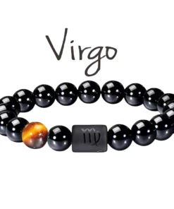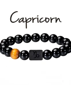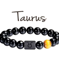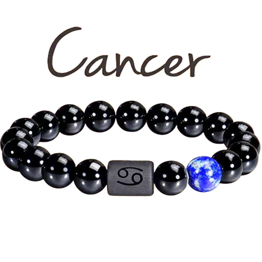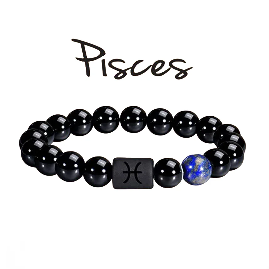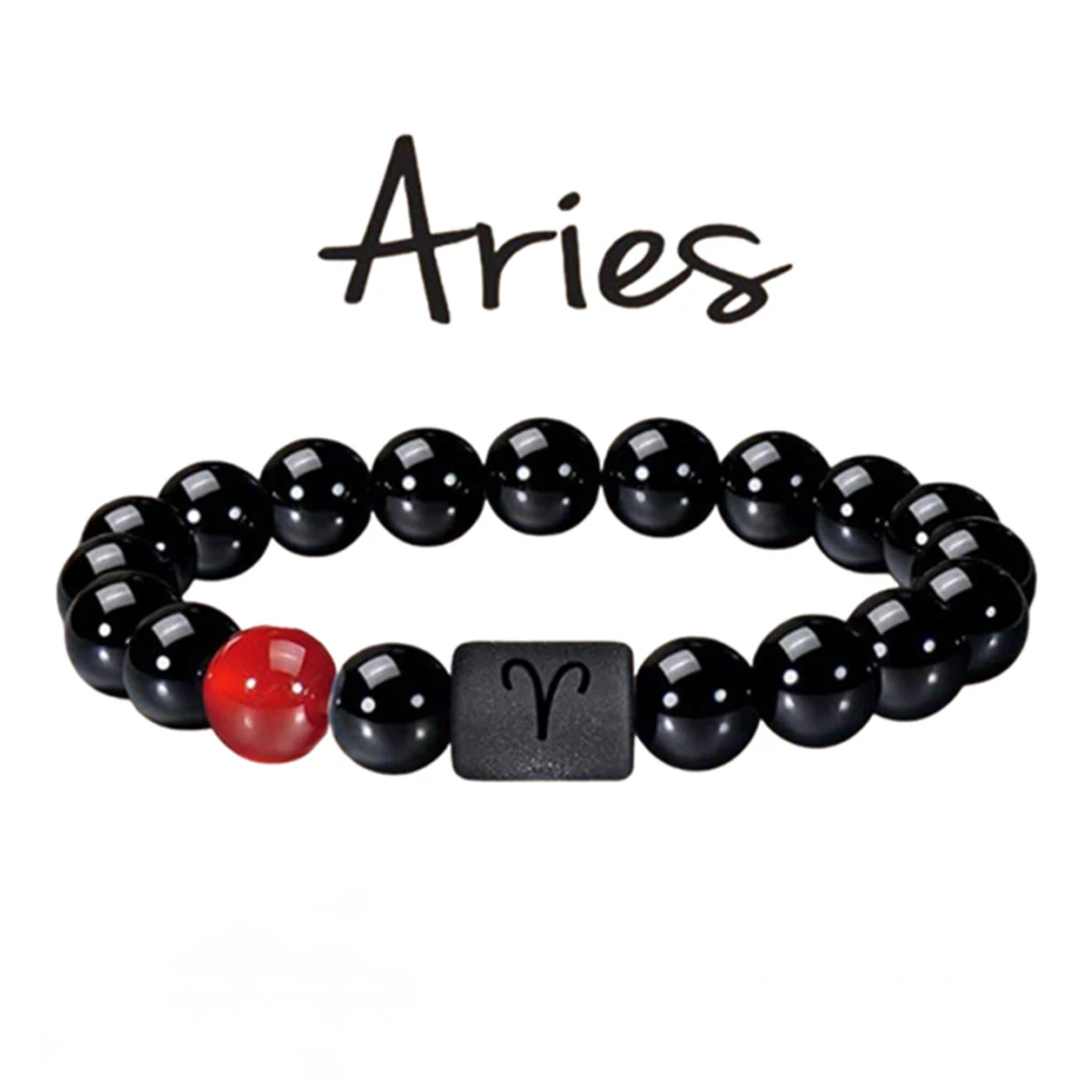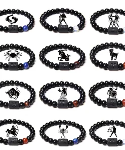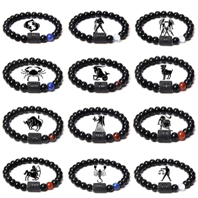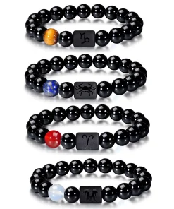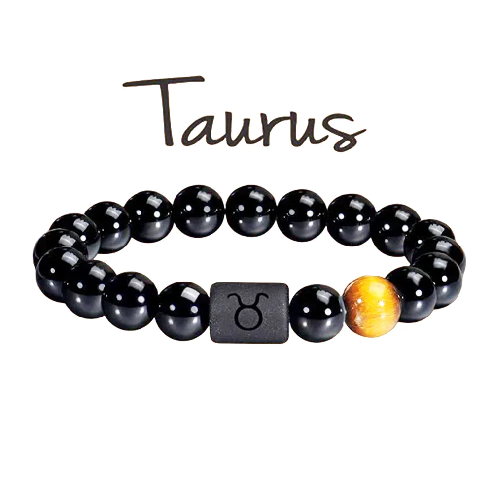 FTCY 10mm Zodiac Yellow Tiger Eye Stone Bracelet for Men Women Black Agate Crystal Elastic Cord Hand Chains Couple’s Jewelry