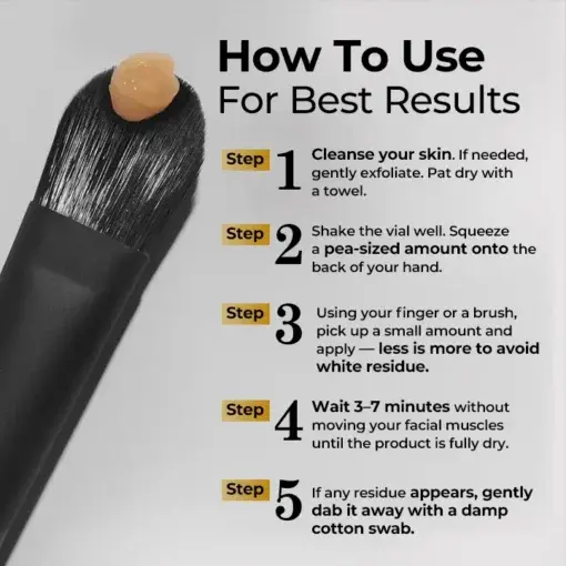 - Wait 3–7 minutes without moving your facial muscles until the product is fully dry.