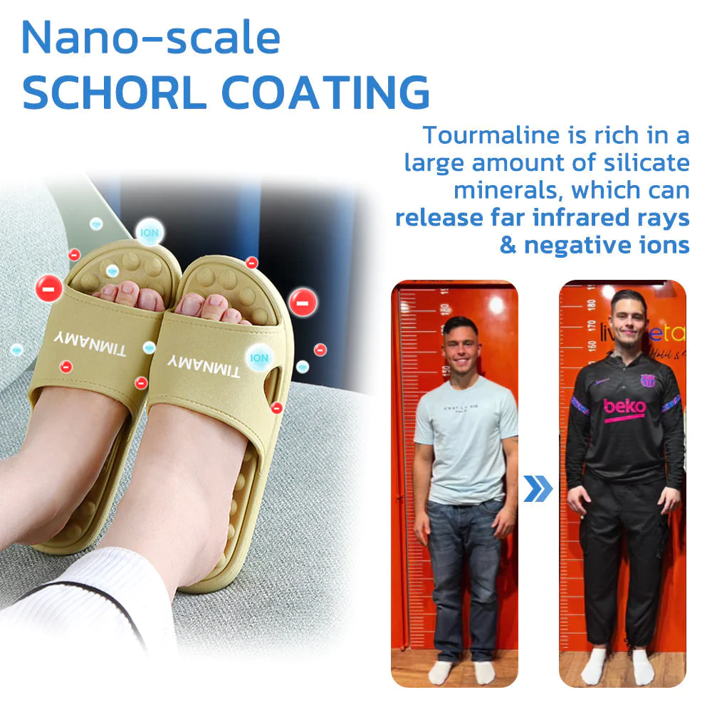 The TIMNAMY™ Far Infrared IonicTitan Heightening Shape Massage Slippers have been designed to promote bone growth, which can contribute to height improvement. The combination of far infrared therapy and enhanced blood circulation provided by these Massage Slippers helps in delivering essential nutrients and oxygen to the bones, supporting their development and growth. By promoting bone health, these Massage Slippers contribute to optimizing height potential and overall skeletal well-being.