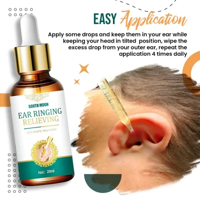 - Place 1-2 small droplets of the Ringing Relieving Ear Drops on the front of your ear (Tinghui Point) and the bottom part of your ear (Yifeng Point).