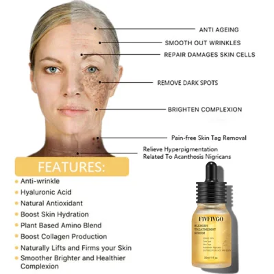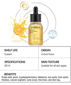 Fivfivgo™ Blemish Treatment Serum contains antioxidants that can help improve the overall health and appearance of the skin. This serum can help hydrate and nourish the skin, which may reduce the appearance of dryness and discoloration, giving the skin a healthier, more even-toned appearance. By exfoliating the top layer of dead skin cells that may be causing a dull or uneven skin tone, exfoliation can help lighten dark skin.