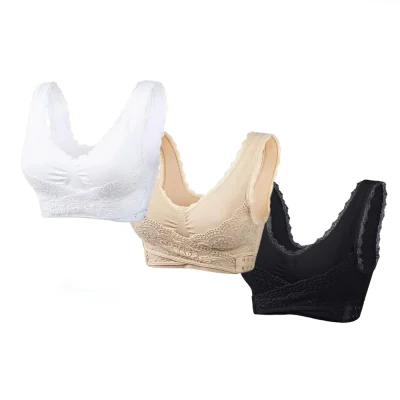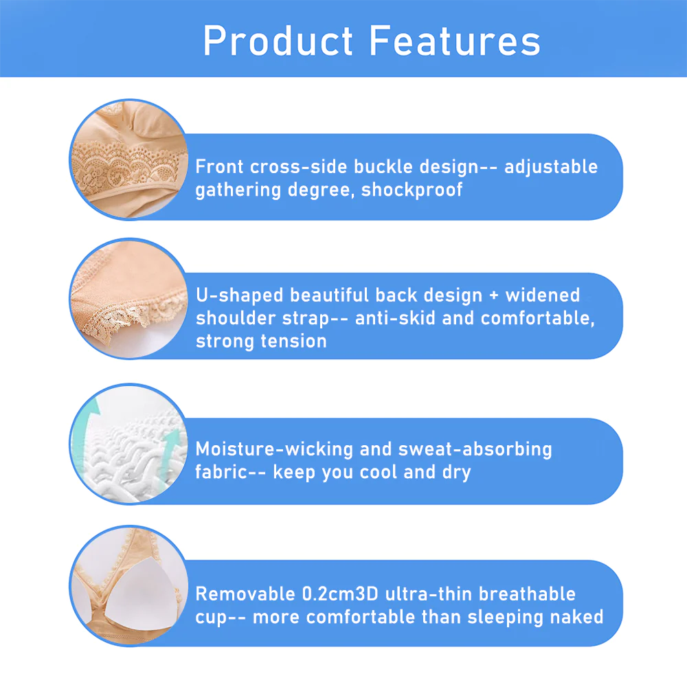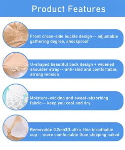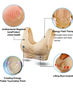 TLOPA Tourmaline Shaping Wireless Silky Bra, Comfort Breathable Fabric, Front Cross Side Buckle Lace has the following product features: