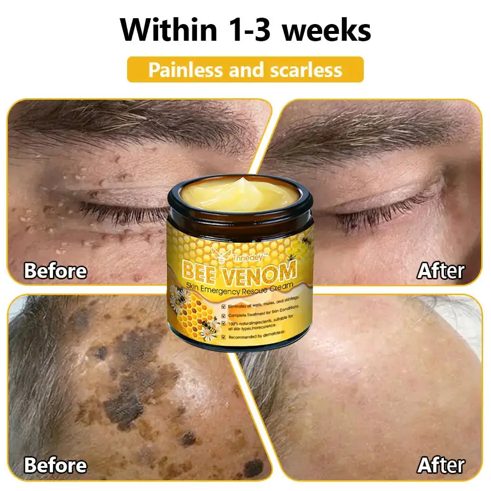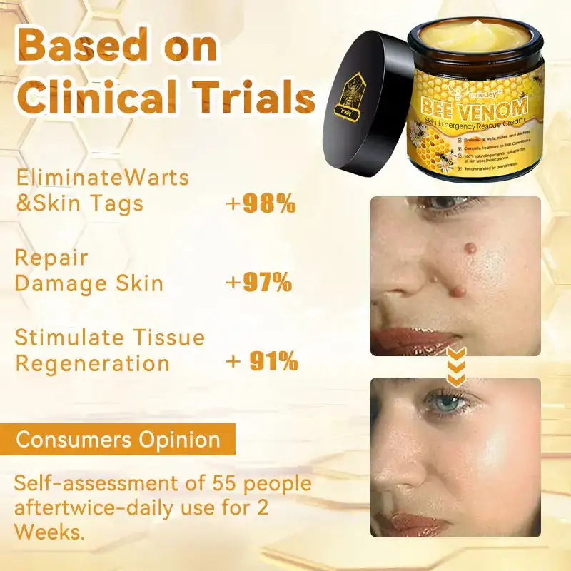 Tnnedey™ Bee Venom Skin Emergency Rescue Cream is here to provide you with quick, visible results in just 7 days! Whether you’re battling with itching, discomfort, or noticeable skin conditions like skin tags, warts, acne, or scars, this powerful product restores your skin’s health and boosts your confidence in no time!