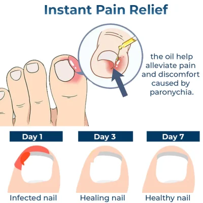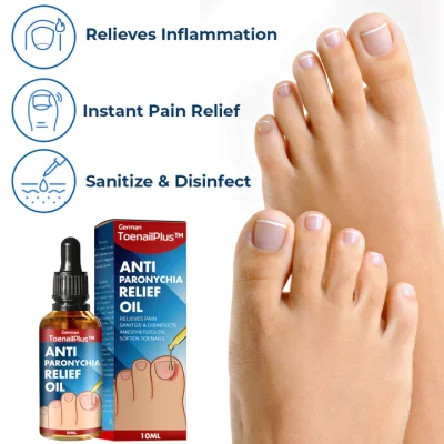 ToenailPlus™ German Anti Paronychia Relief Oils is designed to help alleviate the symptoms of paronychia, a common infection that affects the skin around the nails. The oil contains ingredients that have antibacterial or anti-fungal properties to help fight off the infection and reduce inflammation.