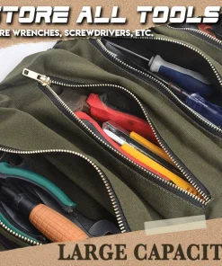 Offers large capacity for loads of tools with 5 large zippered pockets. Able to carry all your wrenches and others tools including small pliers, screwdrivers, allen wrenches, sockets, tire gaugesor flat tools and more!