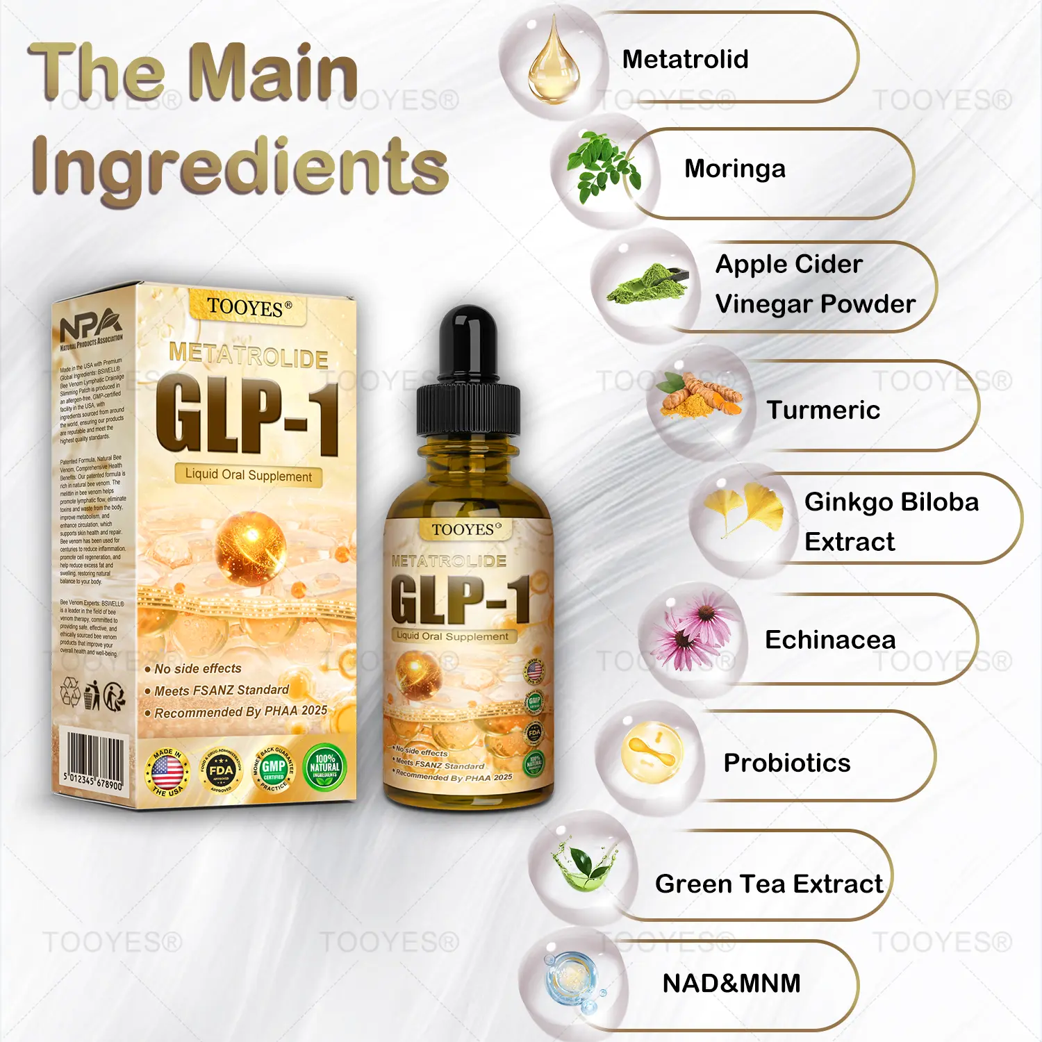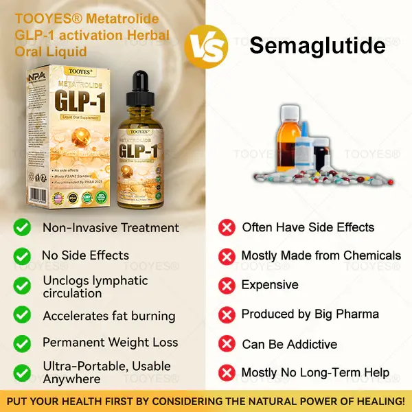 TOOYES® Metatrolide GLP-1 activation Herbal Oral Liquid, developed by a team of over 30 experts at the Mayo Clinic’s Department of Metabolic Medicine over 20 years of research, combines Metatrolide with potent herbal ingredients to boost metabolism, accelerate fat burning, and support digestive and lymphatic health. FDA-approved for safety and efficacy, this Oral Liquid offers a science-backed solution for weight loss and overall well-being.