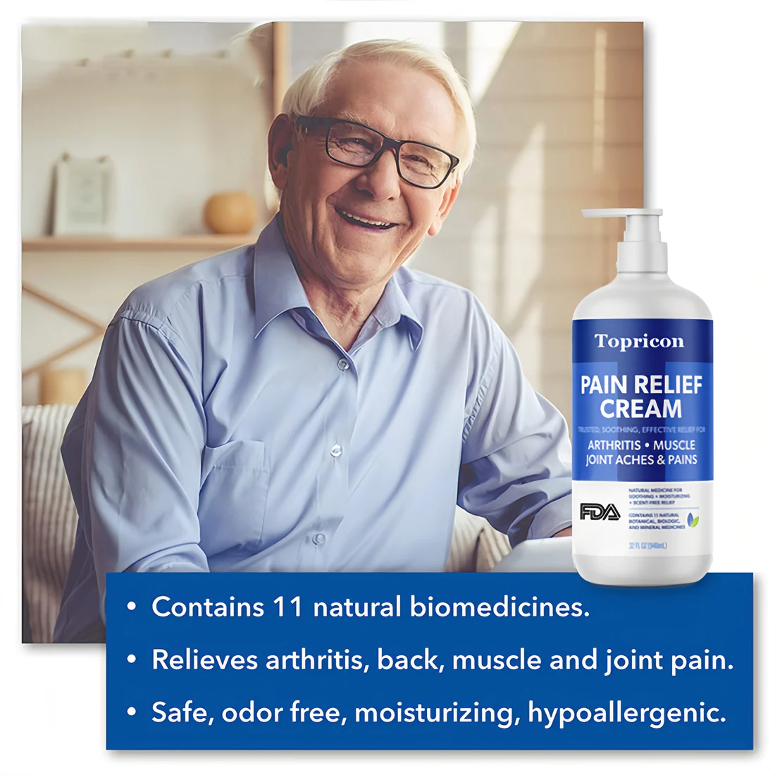 Topricon® Instant Analgesic Joint Nerve Deep Repair Cream contains 11 natural bio-medicines that provide reliable pain relief, improved quality of life, and a powerful adjunct to professional care without side effects or interference with other medications. It is the safest choice for people suffering from joint, orthopedic & nerve pain. It stimulates and supports your body’s desire to “heal the cells that cause pain” Topricon® Instant Analgesic Joint Nerve Deep Repair Cream is a safe, effective and ideal treatment for the whole family (including diabetics) and all skin types.
