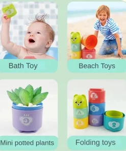1. Stack, nest, sort, build, count, knock down, rattle shaker, shape sorter, water play, beach play and other creative play. A great interactive indoor and outdoor toy set that keeps babies 6 months to 3 years old busy and entertained.