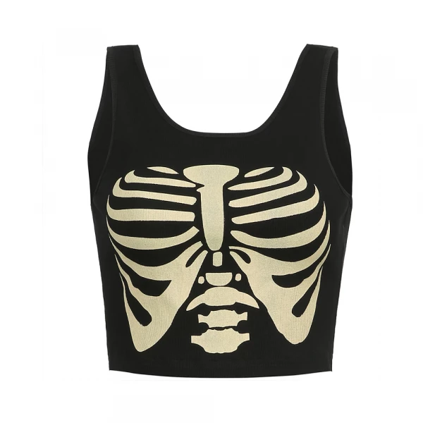 Every head will turn and every eye will look at her when you enter the Halloween party wearing this black and white skeleton crop top.