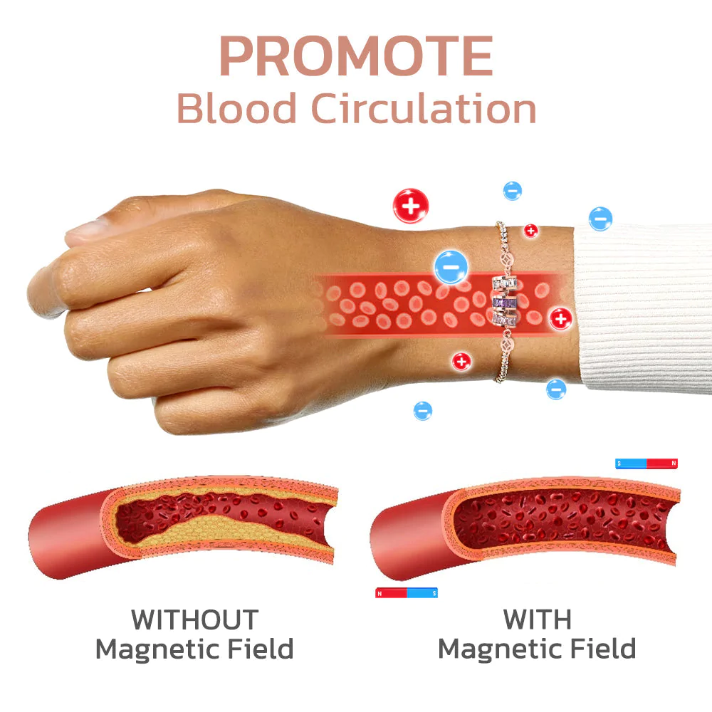 The TriFecta Threanic Spin Bracelet release negative ions which could increase the permeability of the cell membrane, to facilitate the absorption of tissue fluid into lymph vessels. Therefore prevent the blockage of the lymphatic system.
