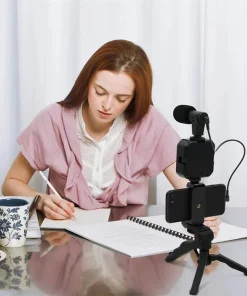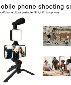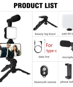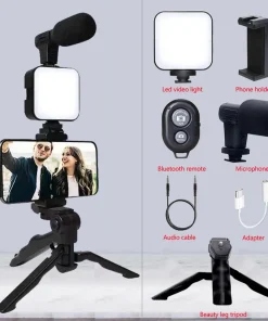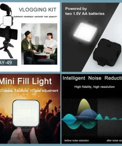 AY49 Smartphone Vlogging Kit With Tripod Phone Holder Mini Microphone LED Fill Light Starter For TikTok Live Stream Video YouTub