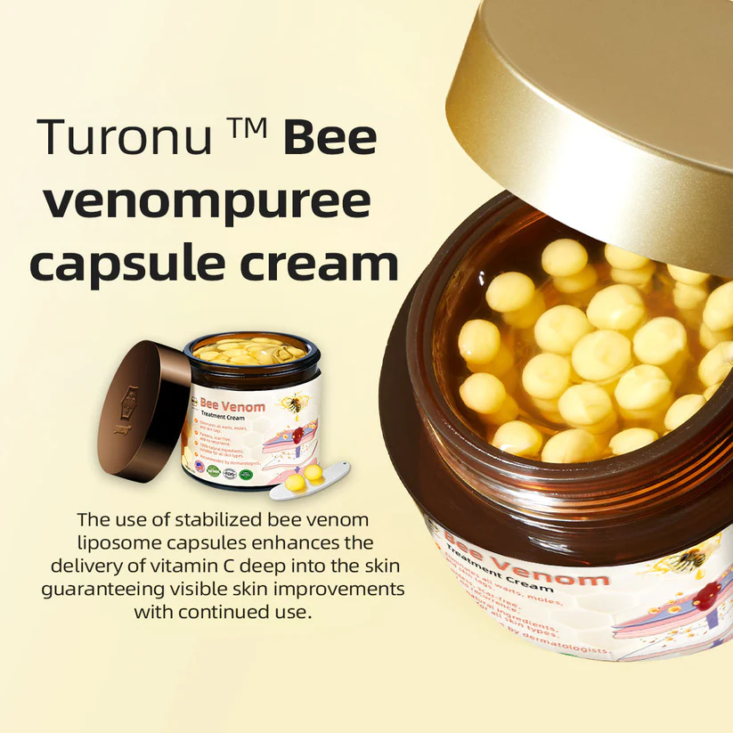 Turonu™ Bee Venom Puree Capsule Cream offers a solution by leveraging the powerful attributes of bee venom to specifically address diverse skin irregularities like skin tags, moles, warts, and blemishes. Enriched with active components derived from bee venom, this advanced formulation works to dissolve and delicately eliminate undesirable growths.