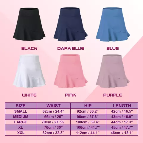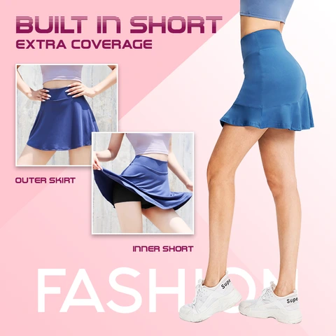 Women’s sports skirts have two layers as outer skirt and inner shorts, the short inner provides extra protection, increases your range of motion, and does not see that you are sweating while exercising.