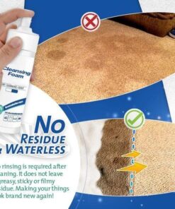 Ultimate Waterless Clothing Cleansing Foam eliminates tough stains and odors in 45 seconds, no rinsing is required! The fast-acting foam expansion formula penetrates and breaks down dirt in just 2 steps. Spray and wipe – save you time from rinsing and drying! Formulated to use on clothing, shoes, sofa, and car interior. It does not leave a sticky or filmy residue – make them look brand new again!