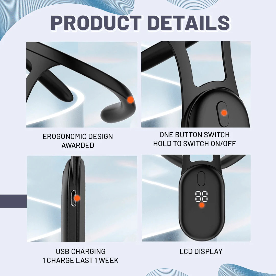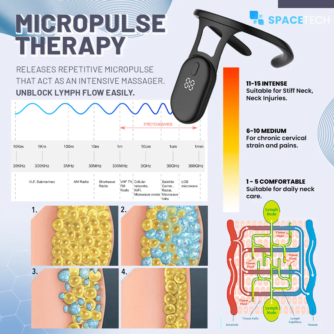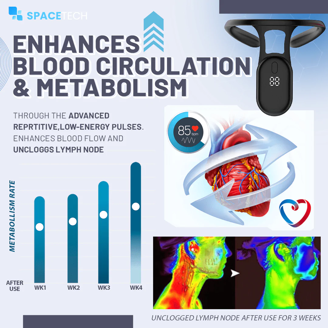 - Wear the Ultrasonic Lymph Unclogging Device over your neck and turn it on.