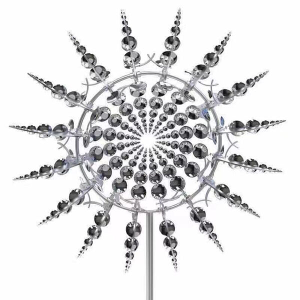 Each blade of this garden wheel is designed to rotate in different directions, the ball bearing structure allows our windbreaker to spin silently even in the slightest breeze. Eighteen balanced blades rotate around a circular axis in the wind. The maximum recommended wind is 70 mph.