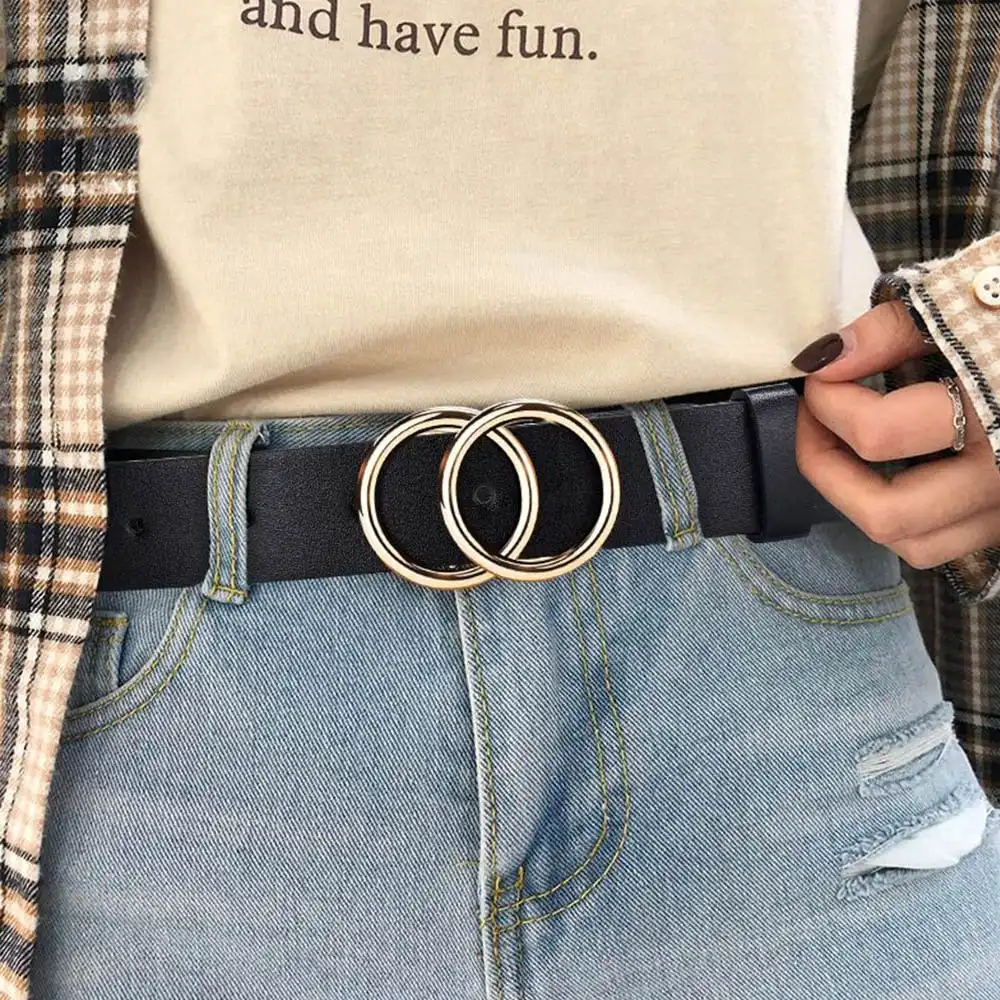 Unisex Double Circle Belt With Gold Buckle has the following product features: