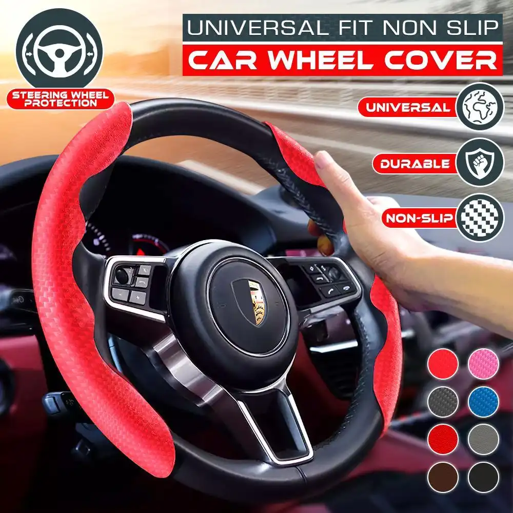 Made of carbon fiber material and comfortable leather material to improve safety, heat resistance, corrosion resistance, high strength, tensile resistance, stability and not easy to deform, which provides durable protection to the steering wheel.