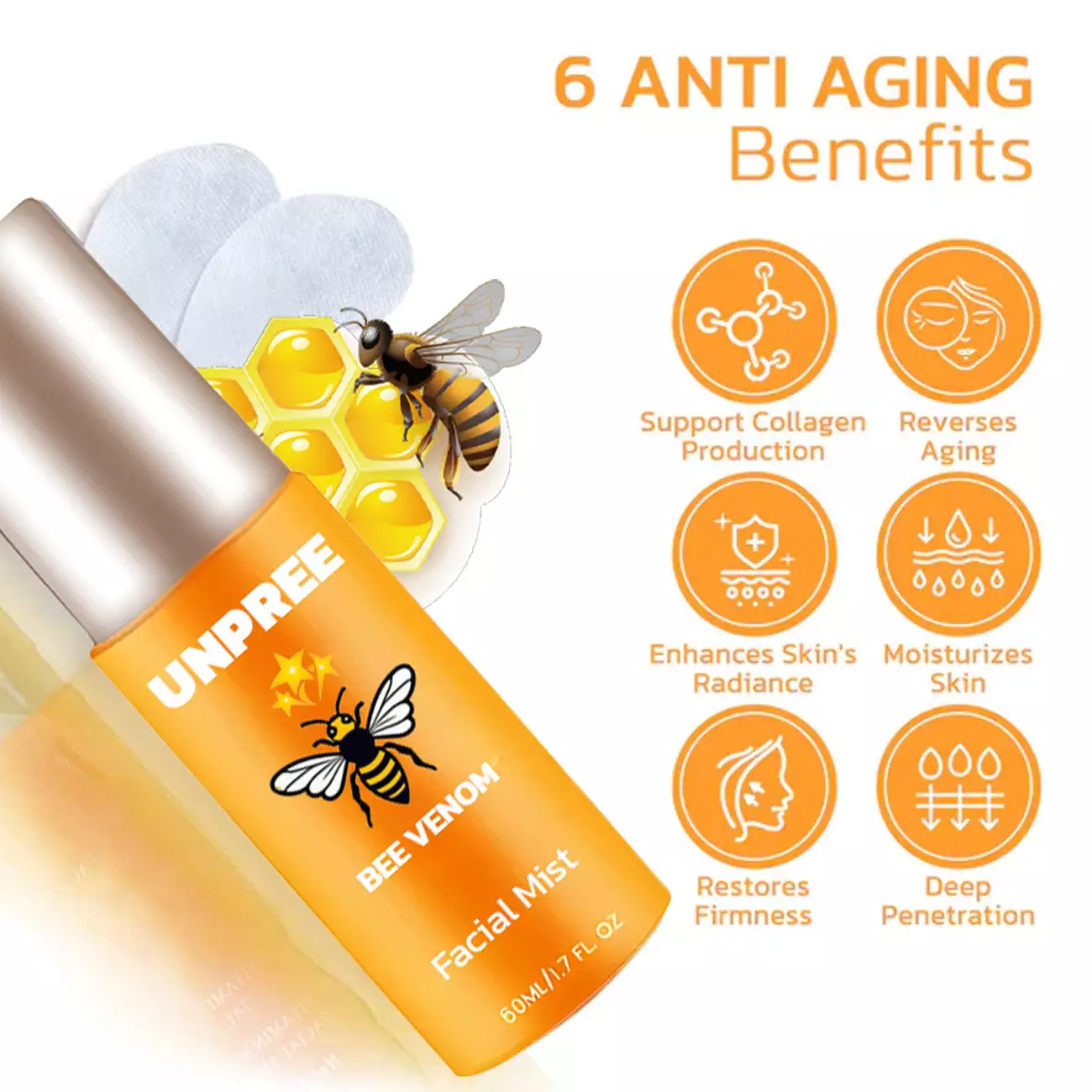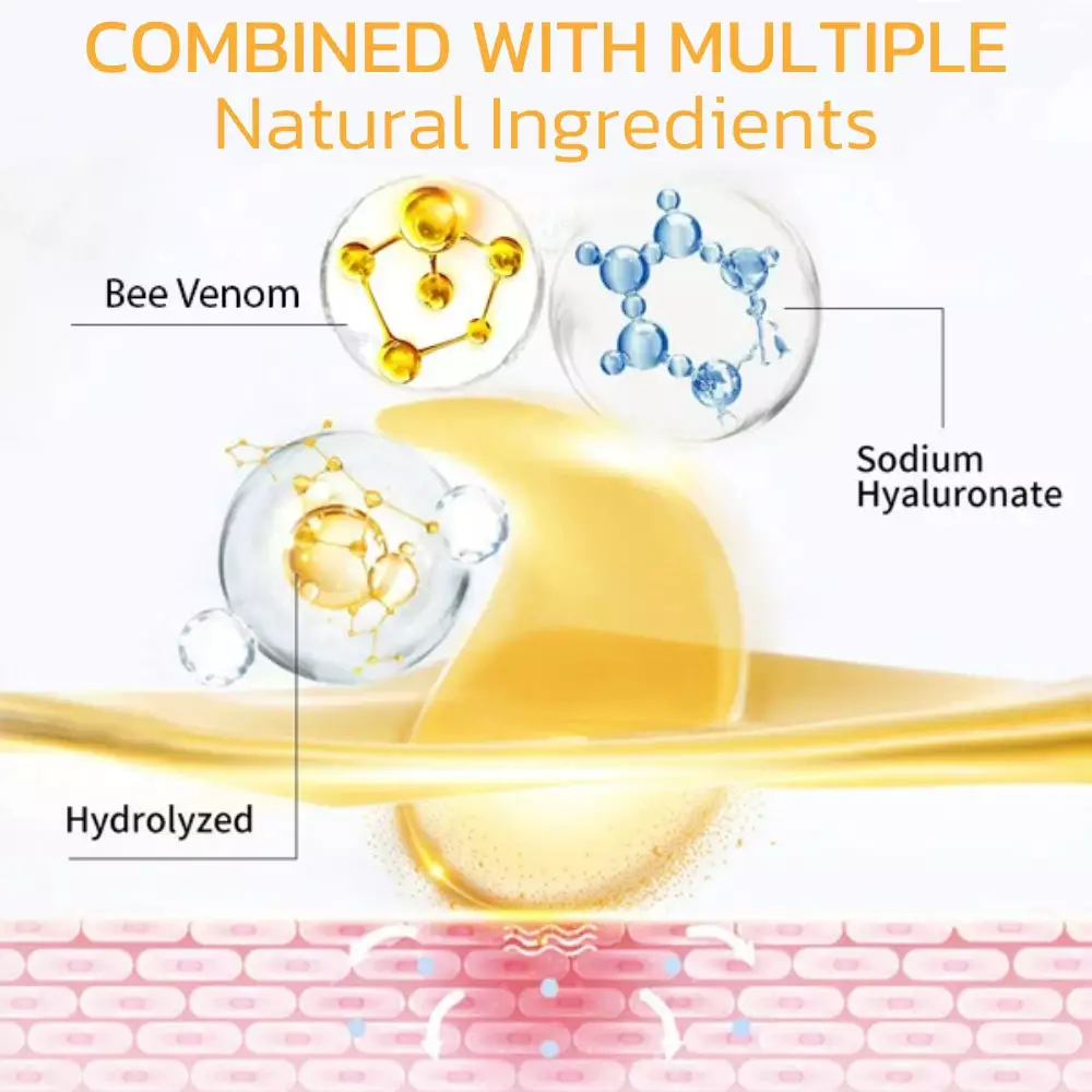 - Bee Venom: Stimulates collagen production and reduces wrinkles, promoting firm, lifted skin.