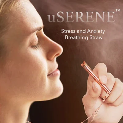 - Take a deep breathe and slowly exhale through the mouthing of uSERENE™ Stress and Anxiety Breathing Straw.