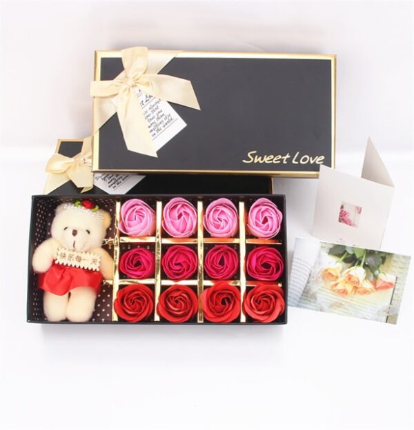 Valentine’s Day Rose Soap Bear Gift Box has the following product features: