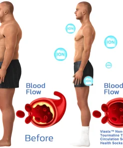 Viastx™ Non-Binding Tourmaline Thermal Cycle Self-Heating Health Socks create a sensation of heat without preheating or electricity, it builds up heat in the foot and keeps it warm without leaking. Features an ergonomic design and the innovative and clever placement of Tourmaline. Tourmaline generates micro-currents that stimulate the foot and calf muscles, enhance blood circulation, make the body’s cellular tissues more energetic, and completely improve body pain, fatigue, and various neuropathies caused by diabetes.