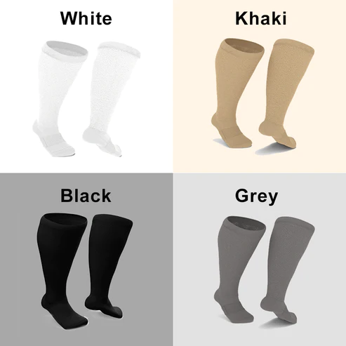 Viastx™ Non-Binding Tourmaline Thermal Cycle Self-Heating Health Socks are designed for people with larger calves who have difficulty wearing traditional compression stockings. The gentle 12-15 mmHg compression makes them easier to wear than any other compression stockings, and the compression force, which is specifically designed for diabetic and varicose arthritis sufferers, is effective in accelerating circulation and relieving pain for patients.