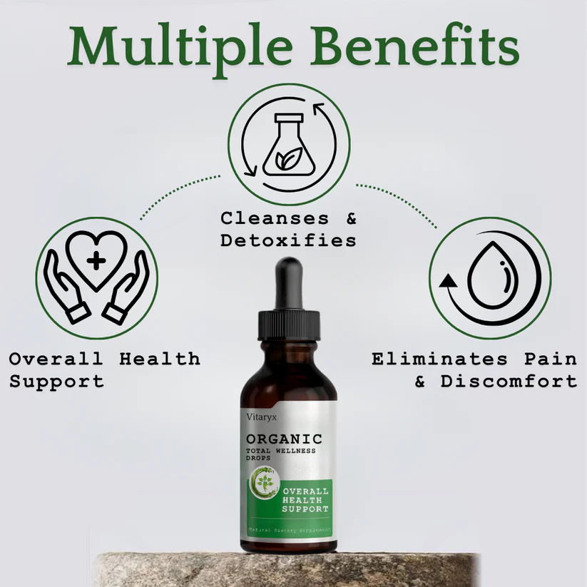 Vitaryx™ Organic Total Wellness Drops are more than just a daily supplement; they represent a commitment to achieving and maintaining optimal health and vitality. Carefully crafted from the finest organic ingredients, Vitaryx™ embodies a holistic approach to wellness. Each ingredient is selected for its specific health benefits, ensuring a comprehensive blend that supports every aspect of your body’s well-being.