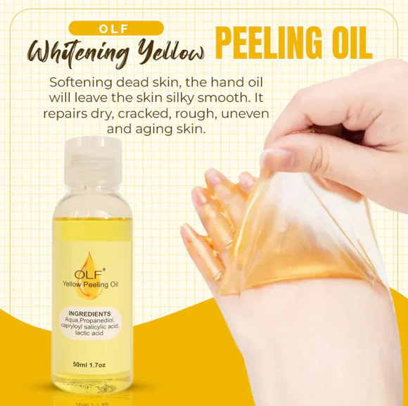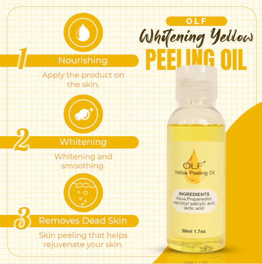 - On clean, dry skin, apply a thin, even layer of Yellow Peeling Oil 3 times a day to the target or your body using a cotton swab.