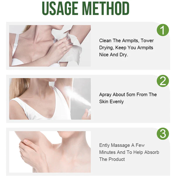 - Functions: Eliminates body odor, Reducesperspiration, Refreshes the skin, Provides a pleasant fragrance
