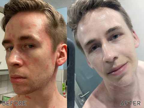 - Apply a generous amount of Oveallgo™ Psoriasis Cream to the affected areas, gently massaging the cream into the skin until fully absorbed.