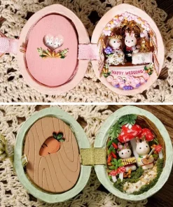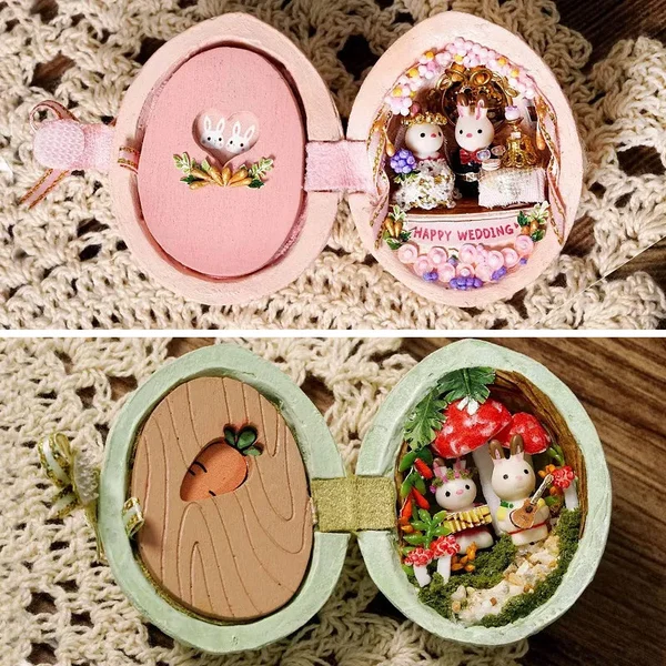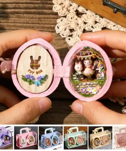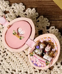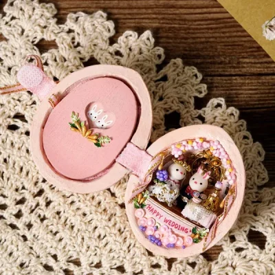 The shape of this mini dollhouse is a house made of resin material walnut, and the cute bunny lives in the dollhouse. This dollhouse has excellent craftsmanship. Once made it can be used to decorate the room or as an art collection.